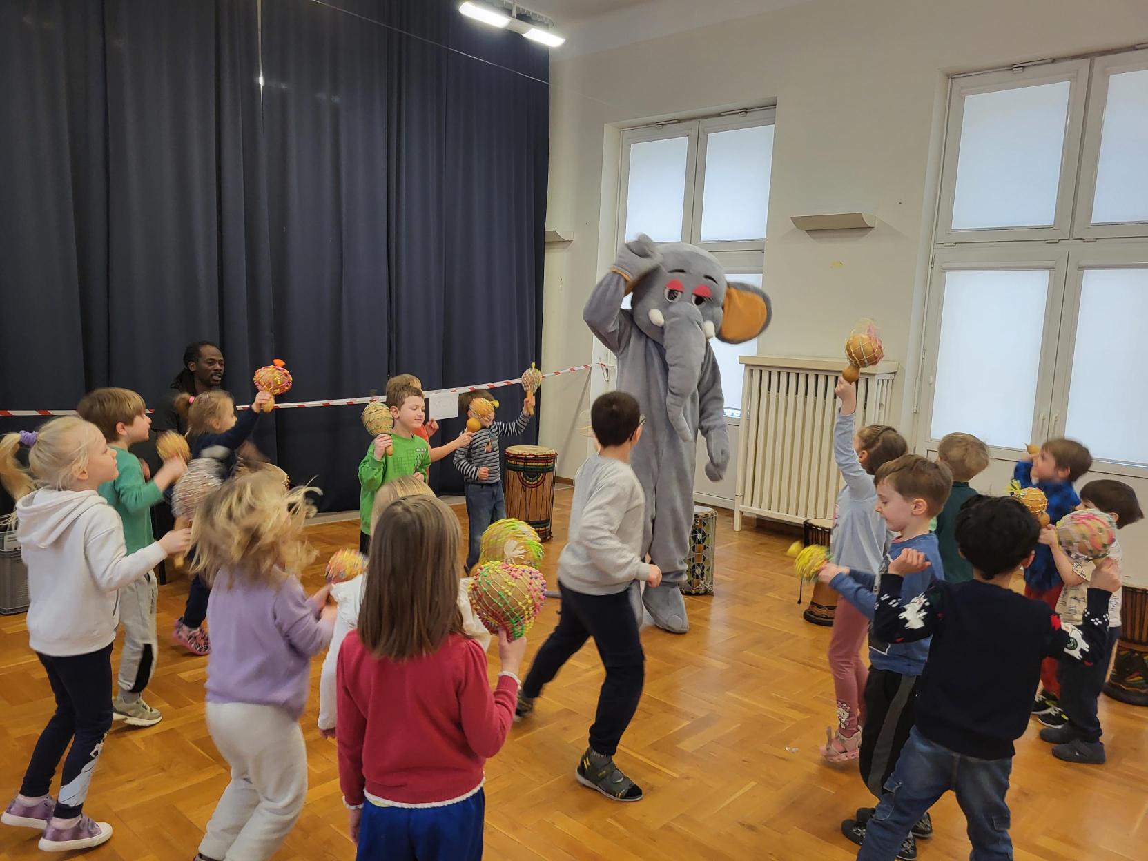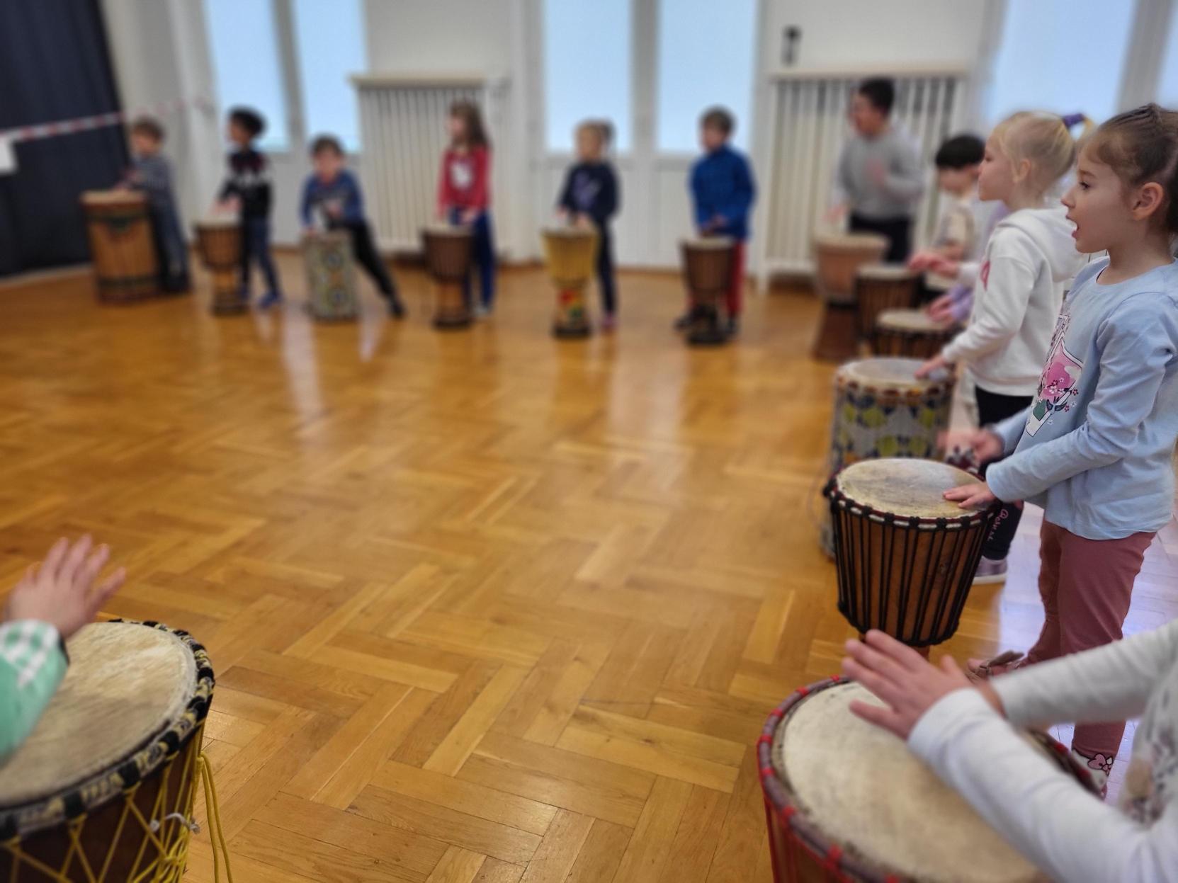 Kolejne ciekawe warsztaty już za nami. Tym razem dzieci wybrały się w muzyczną podróż przy afrykańskich rytmach. Gra na bębnach afrykańskich przysporzyła im wiele radości, a jednocześnie pozwoliła doskonalić poczucie rytmu oraz uczyć się piosenek w języku malinke.