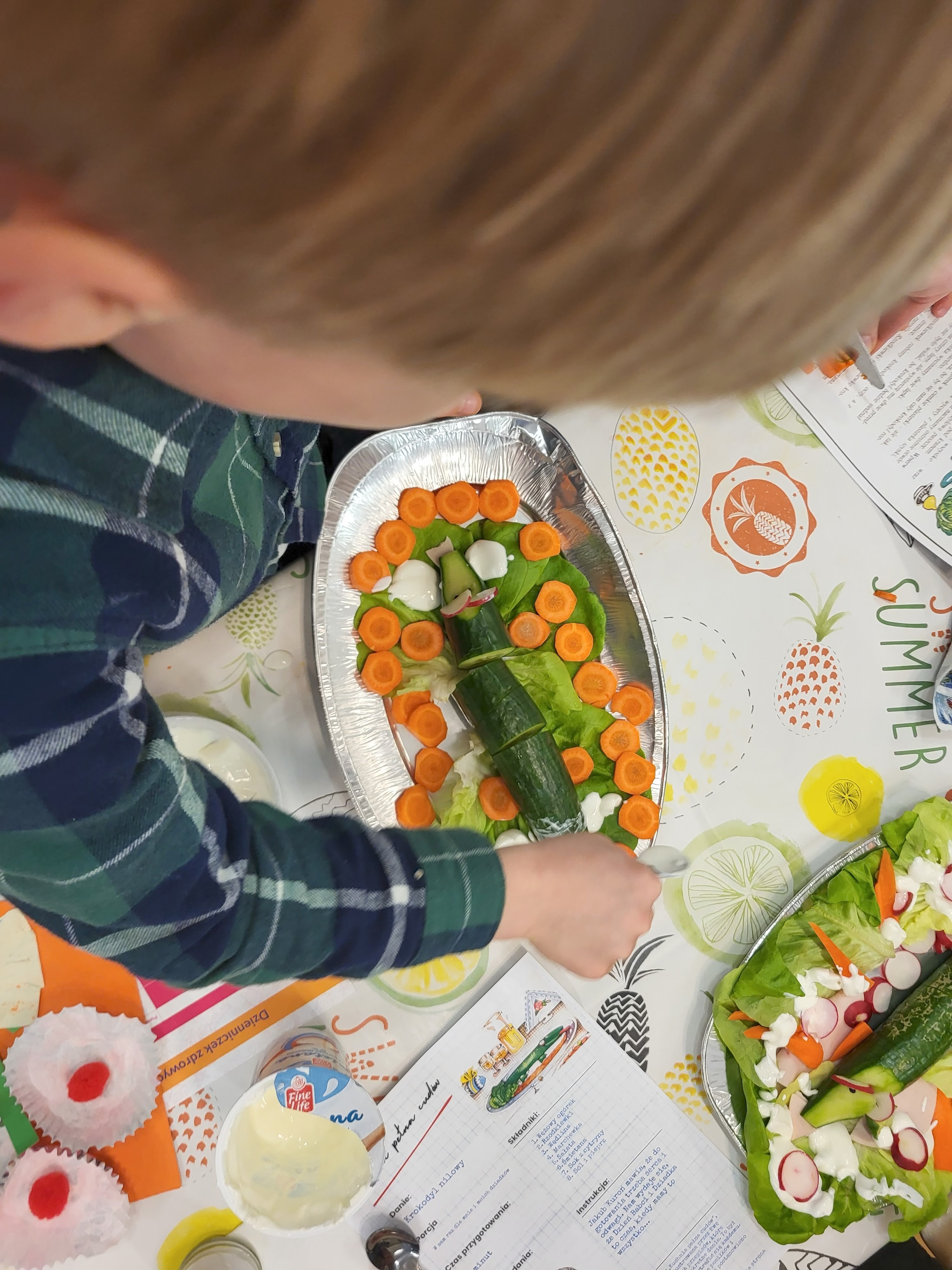 Dzieci z najstarszej grupy spędziły ten wyjątkowy czas z najbliższymi, tworząc wspólnie kuchenne niesamowitości. Udowodniliśmy, że posiłek może być nie tylko pyszny, ale i pełen fantazji. Efektem tej międzypokoleniowej współpracy były niesamowite krokodyle z Nilu, które opanowały talerze przedszkolaków. To było popołudnie pełne radości i twórczej energii!