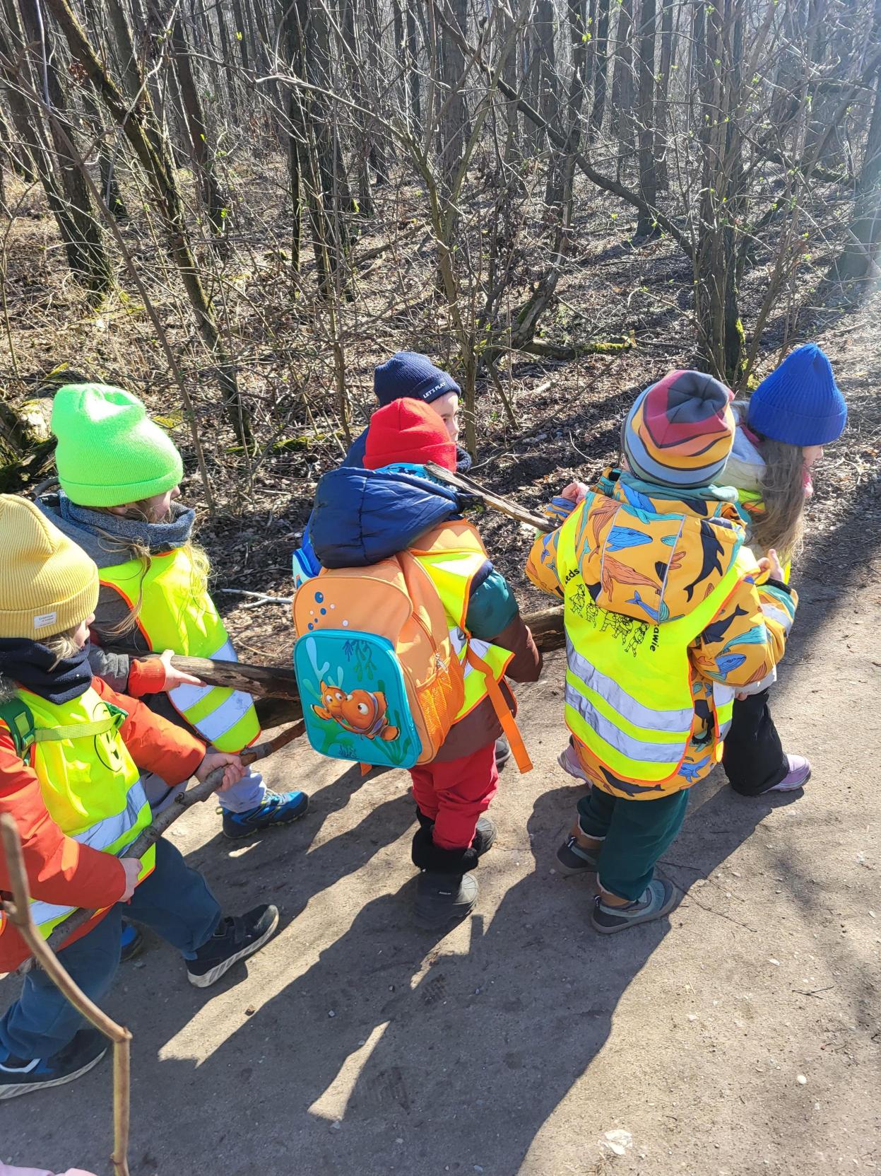 W minionym tygodniu dzieci z grupy II i III wyruszyły na wycieczki do lasów miejskich. Podczas spaceru przedszkolaki poszukiwały pierwszych oznak wiosny, tropiły ślady leśnych zwierząt i… budowały szałasy! Zabawa z wielkimi gałęziami, bieganie między drzewami i odkrywanie tajemnic leśnego runa dostarczyły dzieciom mnóstwo radości. To była prawdziwa przygoda, którą wszyscy zapamiętają na długo!