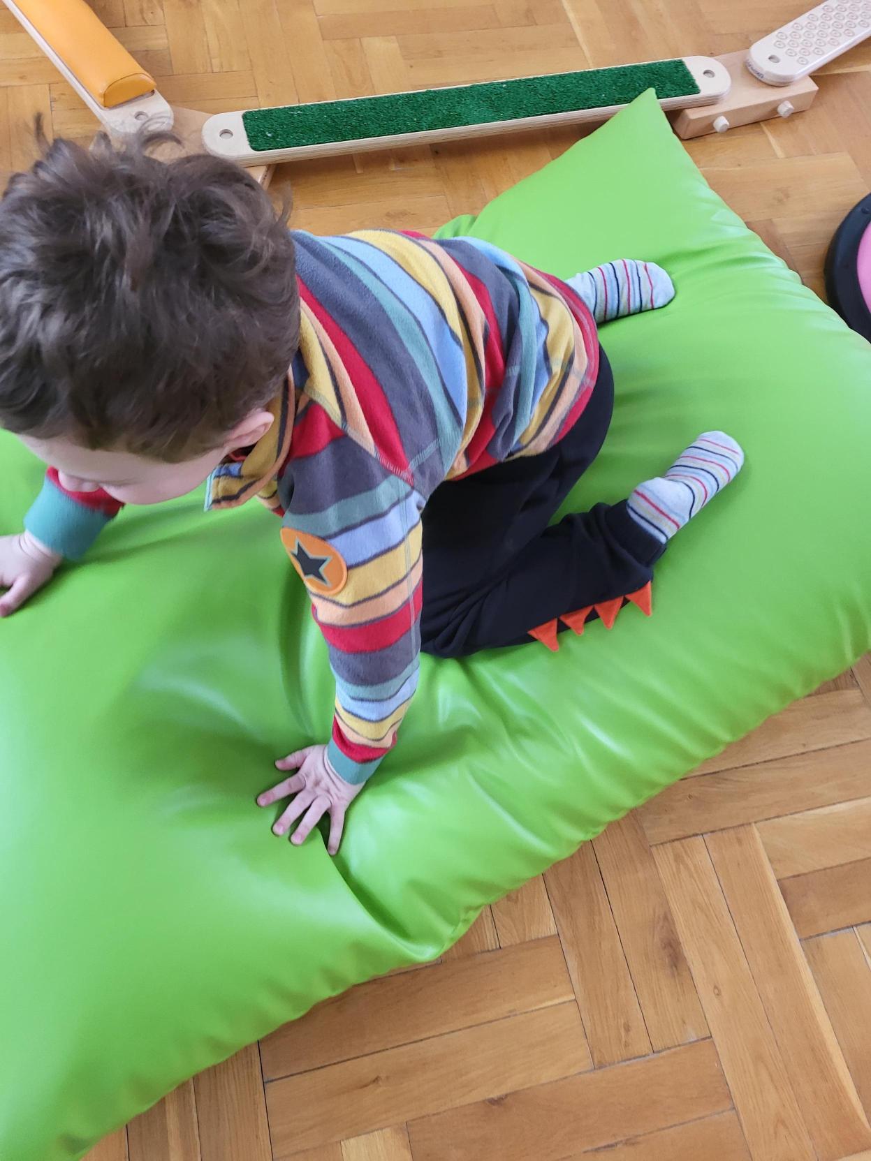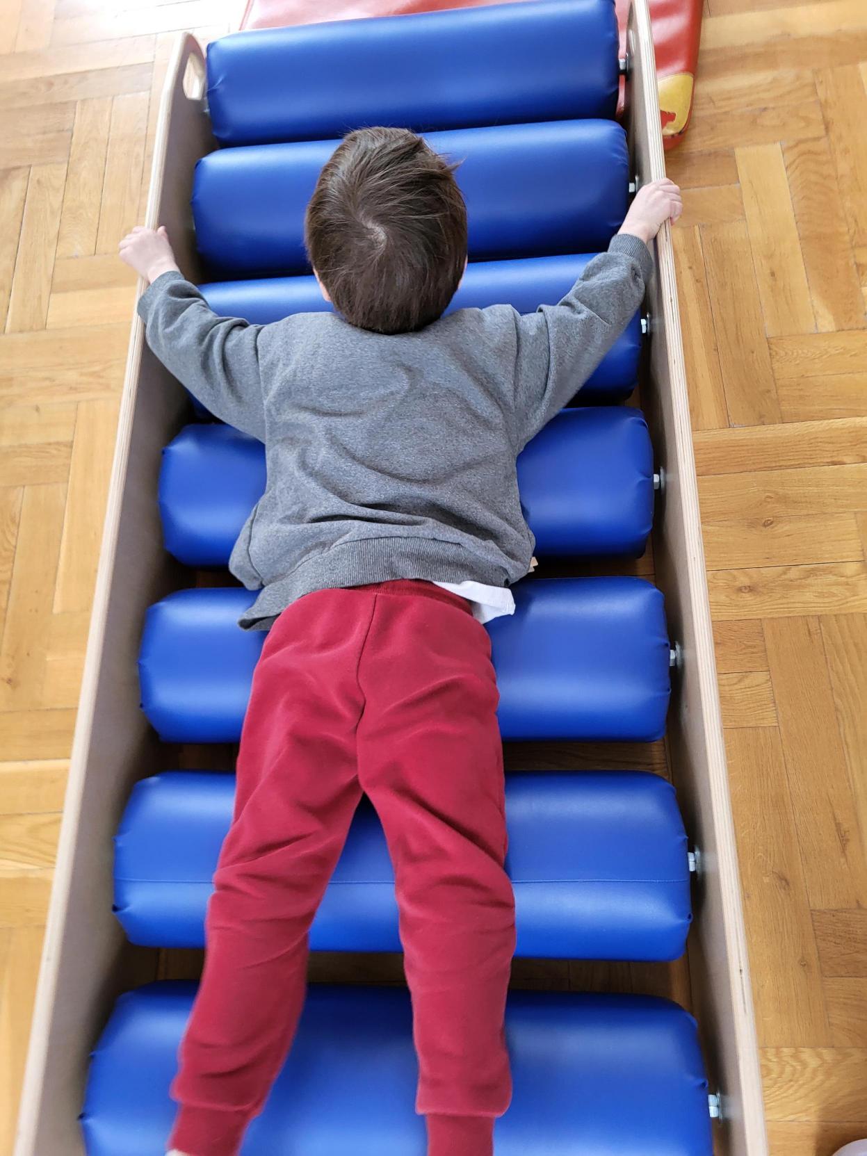 W każdy poniedziałek nasze przedszkolaki uczestniczą w zajęciach prowadzonych przez terapeutę integracji sensorycznej. Każda grupa dzielona jest na dwie mniejsze, aby zajęcia mogły odbywać się w bardziej kameralnej i efektywnej formie — bo ruch to dokładnie to, czego dzieci najbardziej potrzebują!